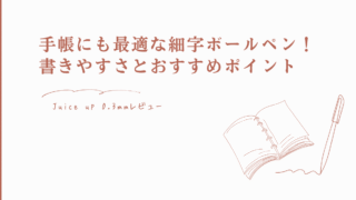 文房具レビュー Juice up 0.3mmレビュー|手帳にも最適な細字ボールペン!書きやすさとおすすめポイント パイロットのJuice up 0.3mmを愛用レビュー。極細なのに滑らかで書きやすく、手帳やノートにも最適!おすすめポイントや使用感を詳しく紹介します。 2025.10.01 文房具レビュー