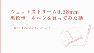 文房具レビュー ジェットストリーム0.38mm黒色ボールペンを買ってみた話|細さと書き心地がちょうどいい! ジェットストリーム0.38mm黒色ボールペンを使ってみたレビュー記事。購入のきっかけから書き心地、使い方まで詳しく紹介! 2025.09.24 文房具レビュー